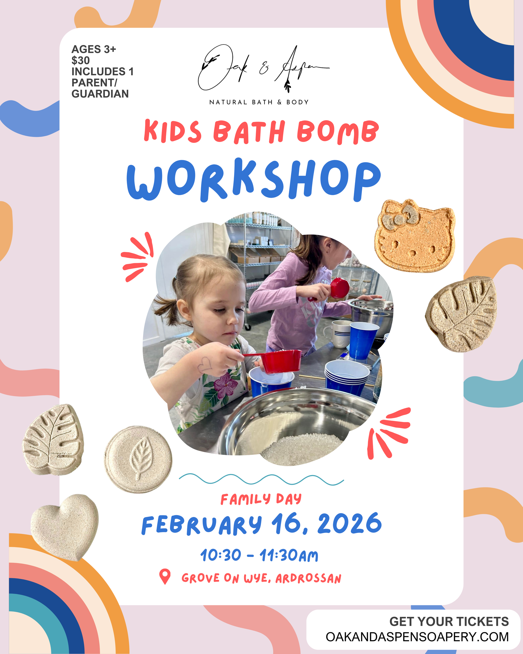 • Luxury Bath Bombs Workshop (ages 16+) from 12:30 - 1:30pm